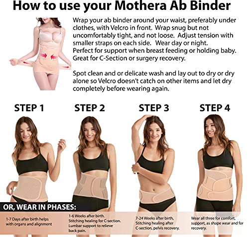 The Mothera 3-in-1 abdominal binder is perfect to add to your postpartum essentials kit. The three different pieces allow for customization as each womens birth journey is unique to them. Whether you need to protect your c-section incision or provide some support to your abdominal muscles, The postpartum girdle gives you the support you need while being comfortable enough for daily wear. Wether you’re looking for pain relief or just a little extra support our post partum recovery belly wrap will give you the support and peace of mind you are looking for.