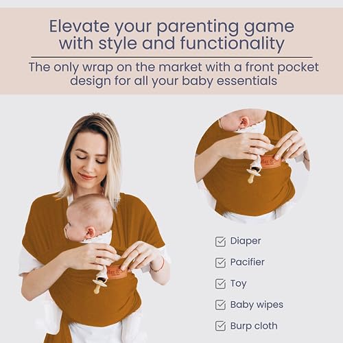 Premium Cotton Baby Wrap Carrier with Front Pocket Newborn to Toddler One Size Fits All Newborn Ultra Soft Baby Carrier wrap by Max&So