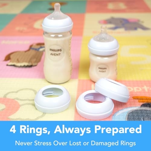 Premium Replacement Baby Bottle Nipple Rings for Philips Avent Bottle, Compatible Screw Bottle Collars for Avent Natural Plastic and Glass Bottles, BPA-Free, Secure Latch, Baby-Safe, 4-Pack