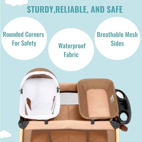CHANGING-TIME PARTNER: The playard boasts of a detachable changer that comes with a soft; waterproof PU leather fabric pad for easy cleaning.