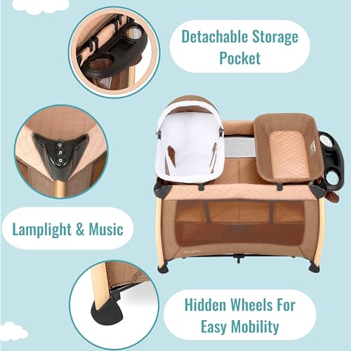 CREATES AN EXPERIENCE: The Princeton Playard has additional features like soft music and lamplight to soothe your baby.