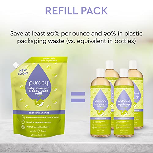Puracy Baby Shampoo & Body Wash for Children – Pure Ingredients with 12 Fruit & Vegetable Extracts for Silky Smooth Skin, Gentle Lavender Chamomile Aroma, Baby Shampoo, Baby Body Wash 12 Oz (2-Pk)
