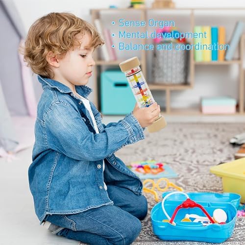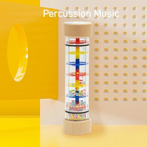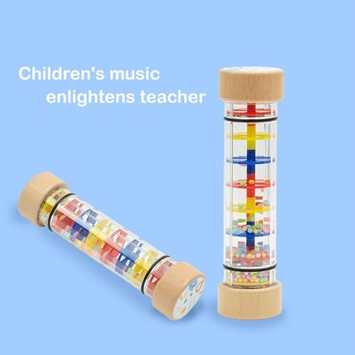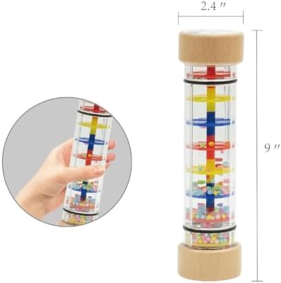 Turn this rainmaker over,shake it or roll it around for clear and soothing sound of rain sounds. Rainstick is a good montessori toys for babies 6-12 months,the rain maker can help baby practice visual awareness and auditory sensory by watching the colorful beads move through the translucent rattle.