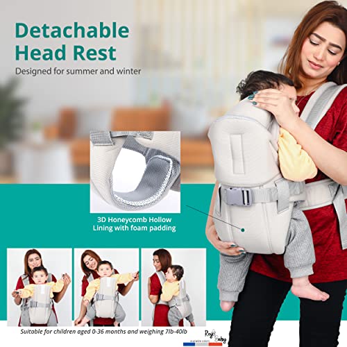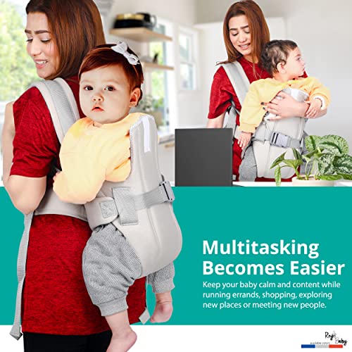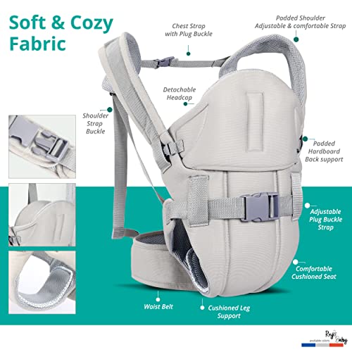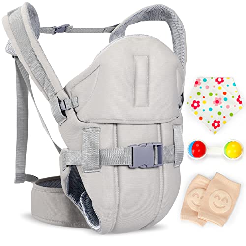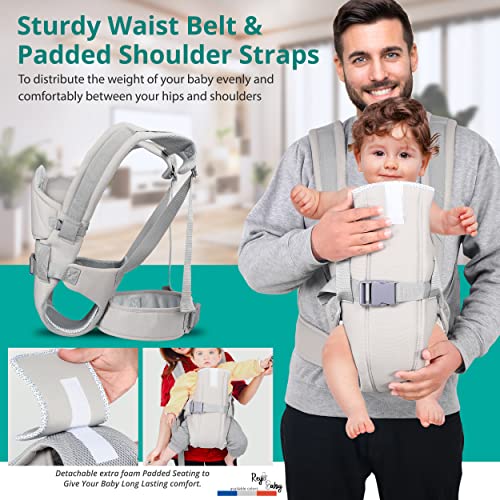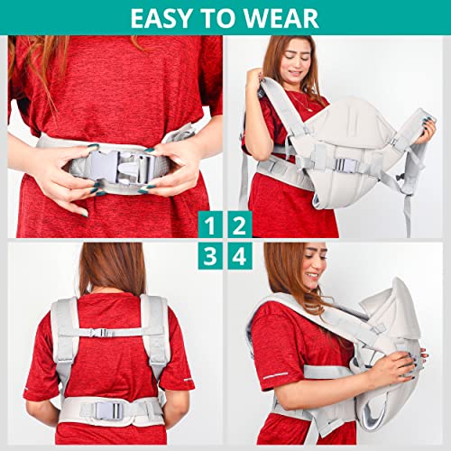 Reyobaby Baby Carrier Newborn to Toddler – Ergonomic & Adjustable Infant Carrier for Baby Wrap with Padded Head and Lumbar Support, Shoulder Straps & Cool Air Mesh Baby Holder (7-40 Lb), Grey