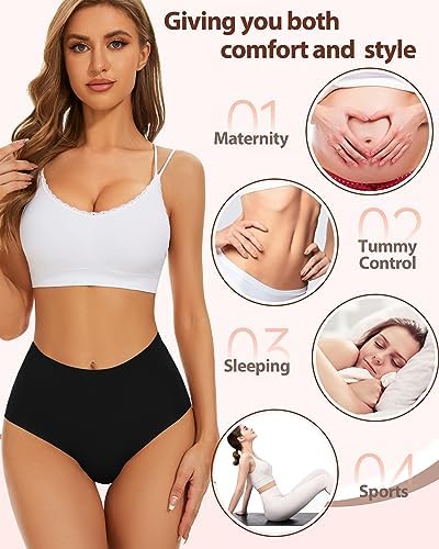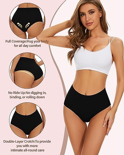 Riozz High Waist Briefs Ladies Seamless Underwear No Show Briefs Comfortable Panties Plus Size Breathable Underwear 4 Pack