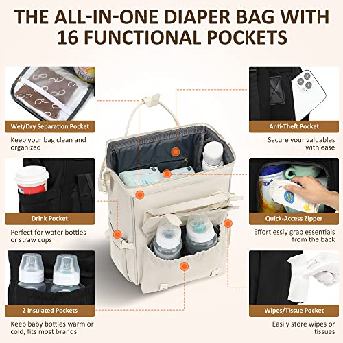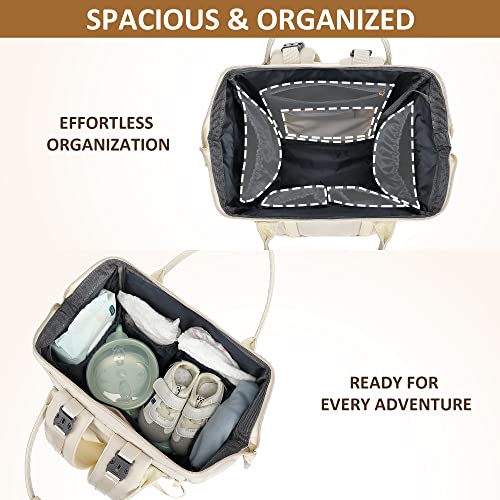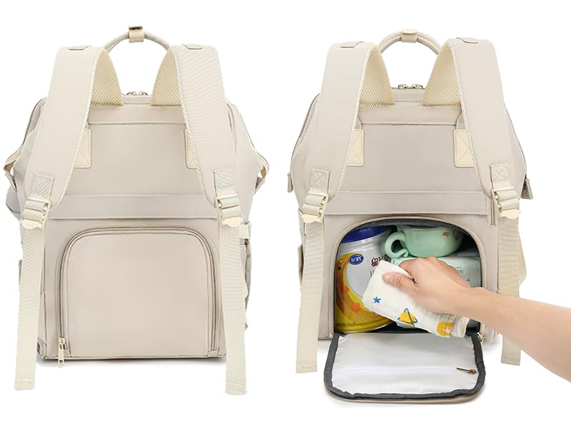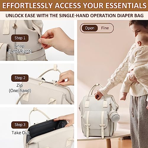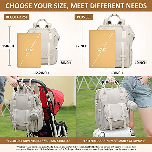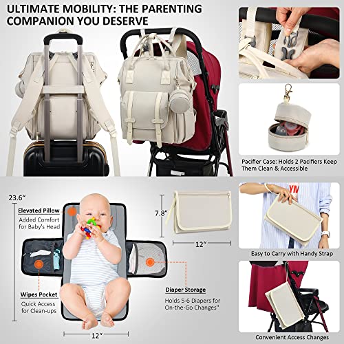 ROSEGIN Small Diaper Bag Backpack for Boy Girl, Multi-Functional Baby Bag with Changing Pad and Pacifier Holder, Waterproof for Travel, Perfect Baby Shower for Mom, Dad, Newborn, Off-White Regular