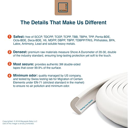CLEAN SAFETY: Roving Cove uses safe and pure raw material and was the first brand to make foam safety bumpers without the use of toxic flame-retardant chemicals (SCCPs). Our edge protector cushion contains no BPA, no phthalates, no heavy metals, no latex, no SCCPs. Inherently flame-resistant; passed flammability tests under US regulations.