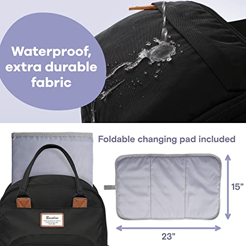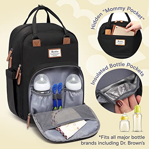 RUVALINO Diaper Bag Backpack, Multifunction Travel Back Pack Maternity Baby Changing Bags, Large Capacity, Waterproof and Stylish, Black