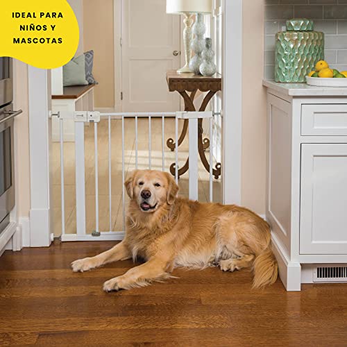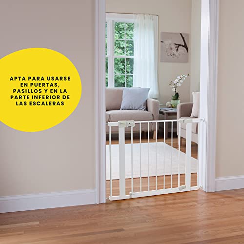Easily create a safe space for children in your home or when visiting family and friends by using this 28-inch-high adjustable baby gate in doorways, hallways, staircases, and more.