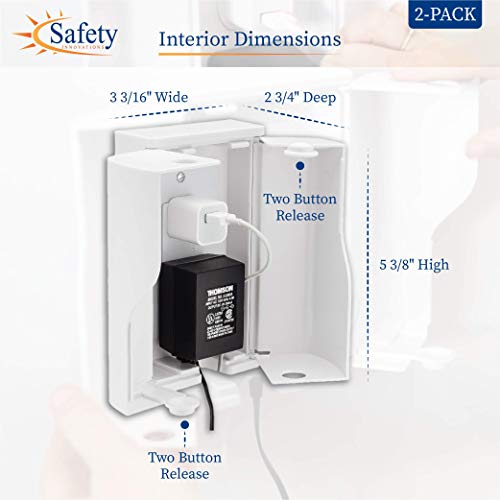 Safety Innovations Twin Door Baby Safety Outlet Cover Box for Babyproofing Outlets – More Interior Space for Extra Large Electrical Plugs and Adapters – Easy to Install – Easy to Use, (2-Pack)