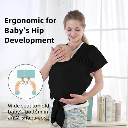 Seeatoo Baby Carrier Slings,Easy to Wear Baby Carrier Suitable for Baby Girls and Boys,Comfortable and Breathable,Adjustable Baby Strap from Newborns to Young Children,Black.