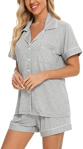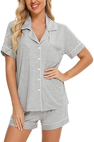 Senert Pajamas Set For Women Short Sleeve Sleepwear Soft Button Down Pjs Set Nightwear Lounge Sets S-XXL