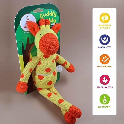 Shumee Giraffe Plush Toy Knitted Toy Doll/Rattle Toy | Baby Tummy Time Toy|Baby Rattle| Premium 100% Organic Cotton | Cuddly Buddy Toys |Baby Sleep Toy |Soft Toy for Newborn, Infants and Toddlers
