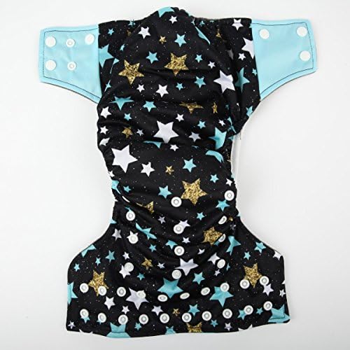 Sigzagor AIll in One Night AIO Cloth Diaper Nappy Sewn in Charcoal Bamboo Insert Reusable Washable (Twinkly)