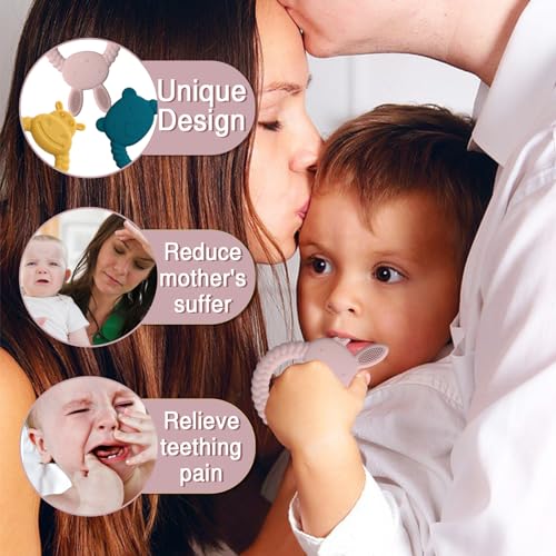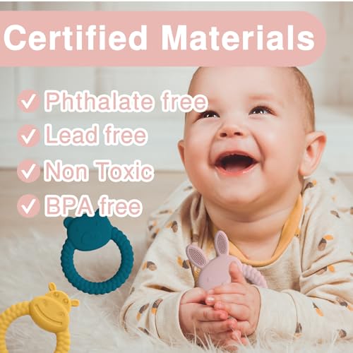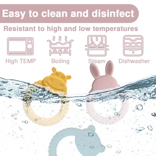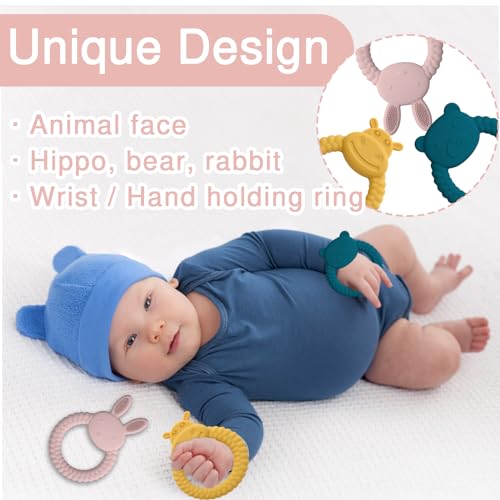 Silicone Teething Toys, Animal Teething Rings, Cow, Rabbit, Bear, Teething Toys for Babies 0-6 Months, BPA Free, Infant Toys for Teething Relief, Baby Chew Toys, 3 Pack
