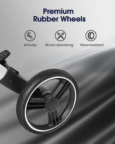 Superior Security: The toddler stroller features a 5-point buckle to securely hold the baby in place. Its wheels are made of high-quality rubber, anti-slip and shock-absorbing. Moreover, there is a warning light bar for added safety during nighttime walks.