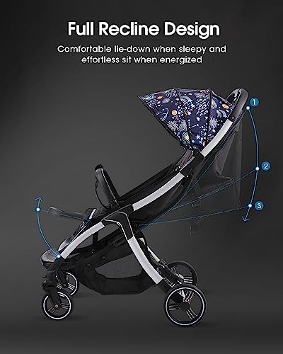 Sivio Compact Baby Stroller, Lightweight All Aluminum Frame Toddler Stroller, Multiposition Recline, Extend Canopy, Big Wheels, 5-Point Harness, Infant Travel Stroller, Convenience for Airplane