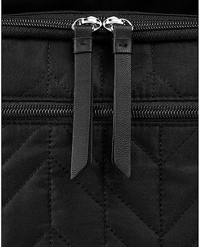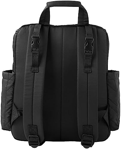 Two insulated side bottle pockets; Elasticized interior pockets and cell phone pocket; Changing pad pocket holds tablets and laptops up to 15”