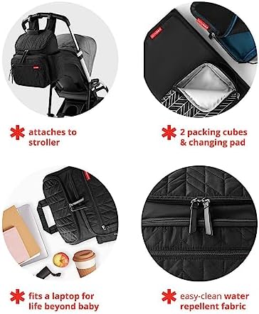 Skip Hop Diaper Bag Backpack: Forma, Multi-Function Baby Travel Bag with Changing Pad & Stroller Attachment, Jet Black