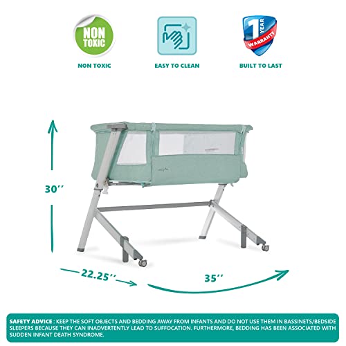 Skylar Bassinet and Bedside Sleeper in Mint, Lightweight and Portable Baby Bassinet, Five Position Adjustable Height, Easy to Fold and Carry Travel Bassinet, JPMA Certified