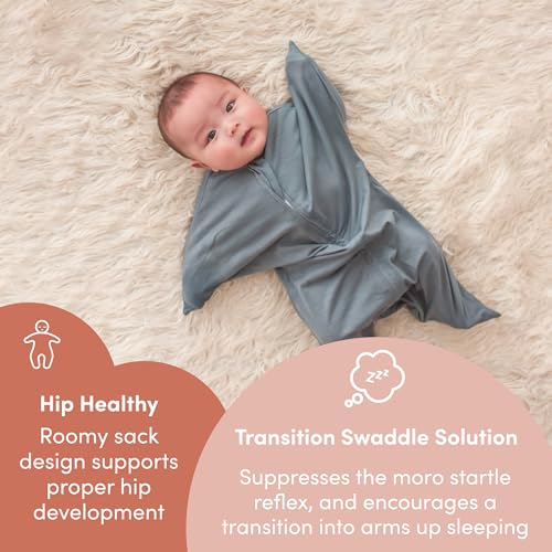 SleepingBaby Zipadee-Zip Transition Swaddle – Cozy Baby Sleep Sack with Zipper, Polyester, Spandex – Roomy Baby Wearable Blanket for Easy Diaper Changes – Classic Grey, Small (4-8 Month)
