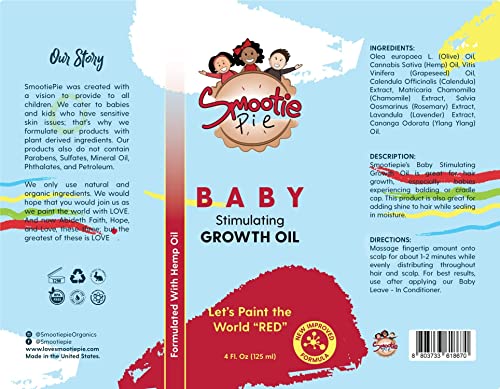SmootiePie Baby Stimulating Growth Oil | Cradle Cap Treatment| Eczema Treatment| 100% Organic, Natural, & Vegan| Nourishing Hair Oil| Hair and Dry Scalp Oil