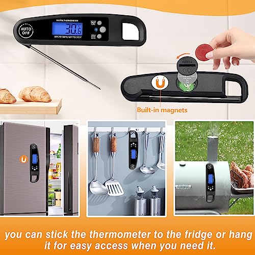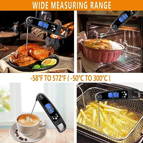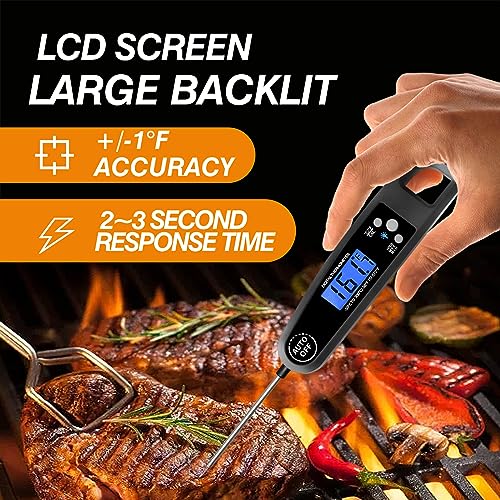 SnailM-JOY Meat Thermometer Digital, Ultra Fast Instant Read Food Thermometer for Cooking and Grilling, Candy Making, Waterproof Wireless Kitchen Thermometer with Backlight & Foldable Probe