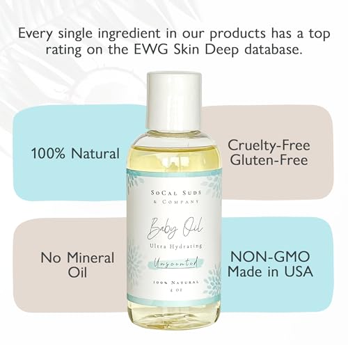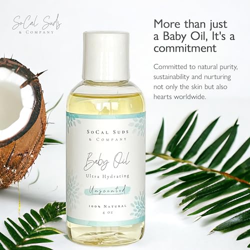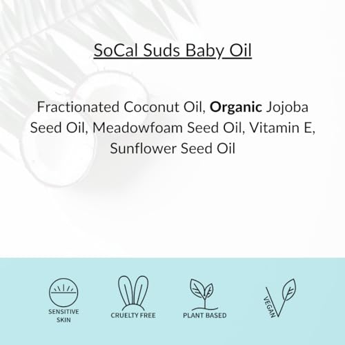 SoCal Suds & Company – Natural & Organic Baby Oil – Moisturizing Nourishing Oil for Delicate Tender Skin – Vitamin-Enriched with Jojoba and Sunflower Oils – Gentle Sensitive Newborn – Unscented, 4oz