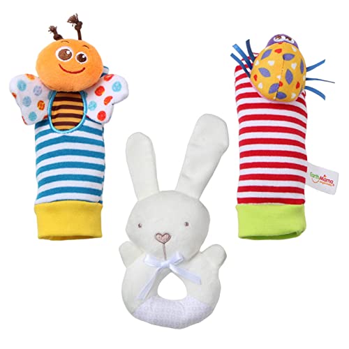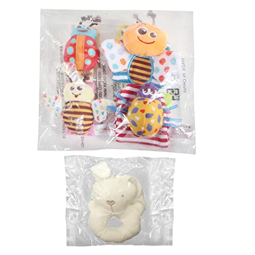 PHREKUDA Sock & Wrist Rattles Toy Set for Babies, Cotton Plush Stuffed Rattles for Baby, Rattles for Babies, Newborn Gifts for Boys Girls Infant (5 in 1)