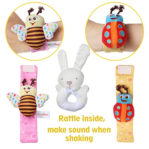 Sock & Wrist Rattles Toy Set for Babies, Plush Stuffed Rattles for Baby, Rattles for Babies, Newborn Gifts for Boys Girls Infant (5 in 1) (Rabbit)