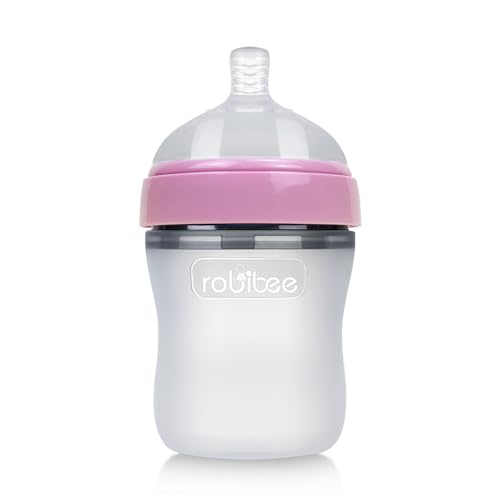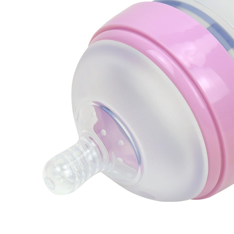 Soft Silicone Baby Feeding Bottle | Anti-Colic, Slow-Flow Nipples, Balanced Base, Natural Shape for Natural Latching and Holding, Easy to Clean, 2-Pack (6 oz, Pink)