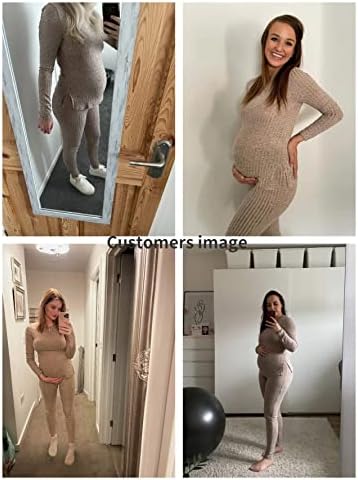 SOLY HUX Women’s Maternity Sets 2 Piece Outfits Long Sleeve Split Hem Top and Adjustable Elastic Waist Pants