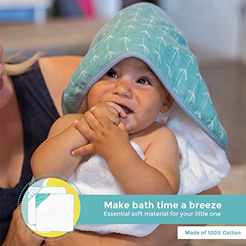 baby essentials | make bath time a delight with these plush and absorbent terry bath towels. the hood features beautiful designs printed on cotton muslin fabric