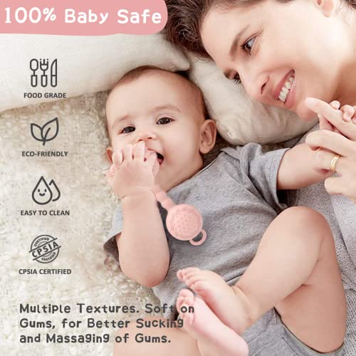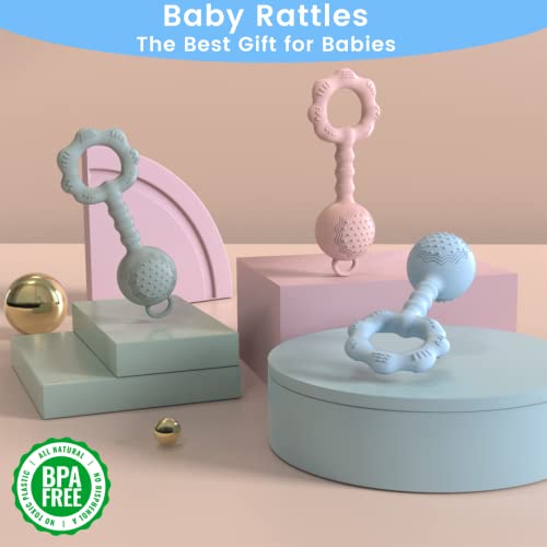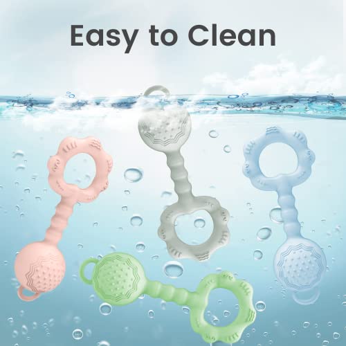 Easy to Hold – The newborn toys weigh about 2.1oz, sized just right for little hands to grasp and shake. the right weight and textured handle suitable for baby to play and exercise their muscles. Multiple textures, soft on gums, for better sucking and massaging of gums.