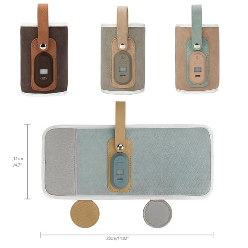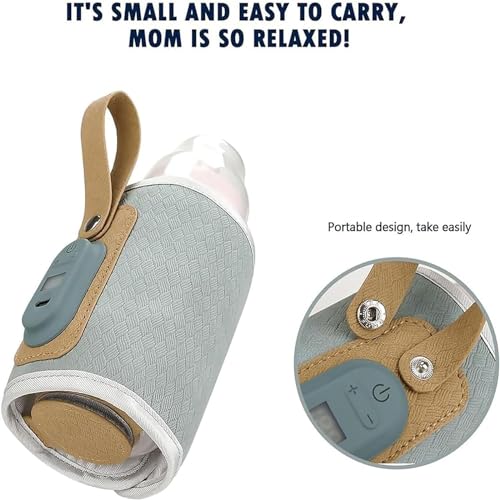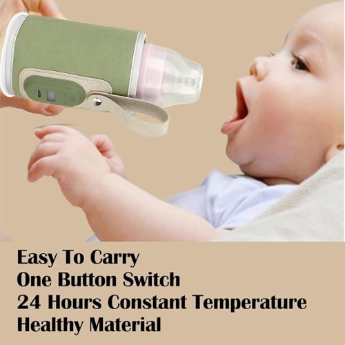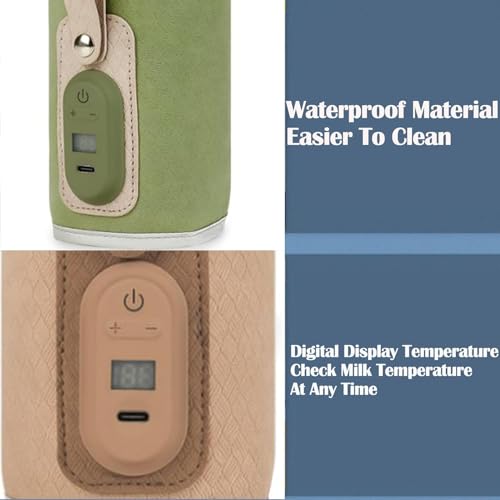 Strifee Baby Bottle Warmer, Strifee Bottle Warmer Portable, Rechargeable Portable Baby Bottle Warmer, 7 Different Temperatures Bottle Warmer with LED Display (Green)