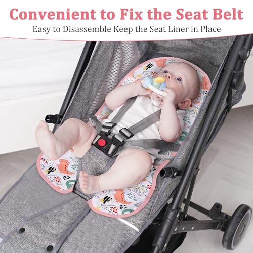 【Quick & Easy Installation】 Each baby cooling pad also features 2 open slots to make it simple to run seat and stroller straps through for better safety and security. Unique design with sewed straps keeps the stroller insert from shifting.