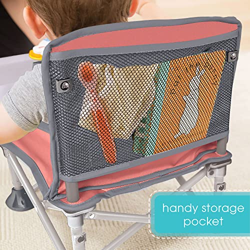 Summer Infant Pop ‘N Sit Portable Booster Chair, Coral & Gray – Booster Seat for Indoor/Outdoor Use – Fast, Easy and Compact Fold