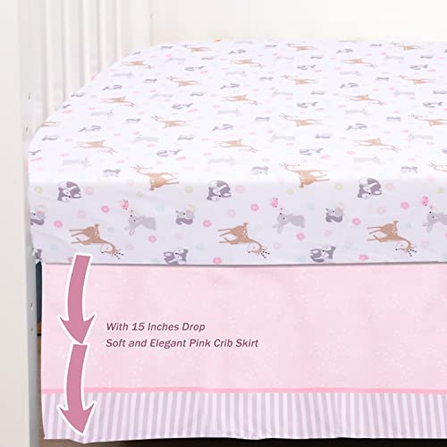 Suyfhdc Crib Bedding Set for Girls, 4 Piece Crib Bedding Set, Standard Size Baby Bedding Set, Crib Quilt & Crib Sheet & Crib Skirt Included & Diaper Stacker