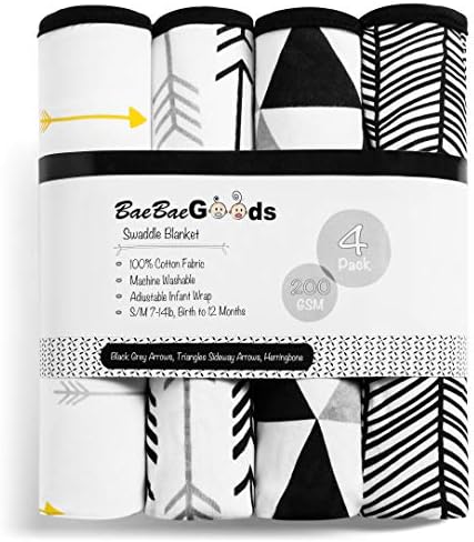 Swaddle Blanket, Adjustable Infant Baby Swaddling Wrap Set of 4, Baby Swaddling Wrap Blankets for Boys and Girls Made in Very Soft Cotton, by BaeBae Goods