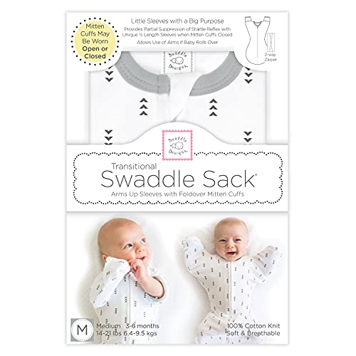 SwaddleDesigns Transitional Swaddle Sack with Arms Up Half-Length Sleeves and Mitten Cuffs, Tiny Arrows, Medium, 3-6mo, 14-21 lbs (Parents’ Picks Award Winner, Easy Transition with Better Sleep)