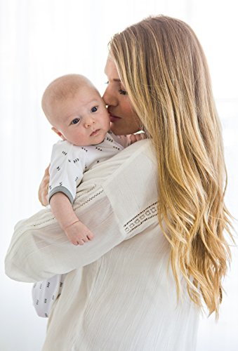 HELPFUL 2-way zipper for easy diaper changes; Soft stretchy cotton knit; SNUG fitting design helps support baby in natural, flexed position, and helps baby feel secure; Small 6-14 lbs, 0-3 months; Medium 14-21 lbs, 3-6 months; US Patent D833,613