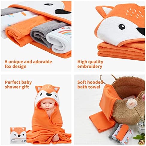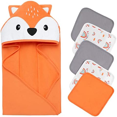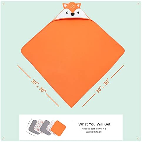 SYNPOS Baby Bath Towels For Newborn with 5 Baby Washcloths – Ultra Absorbent and Soft Cotton Hooded Bath Towel for Babie, Toddler, Infant – Unisex Hooded Baby Bath Towel