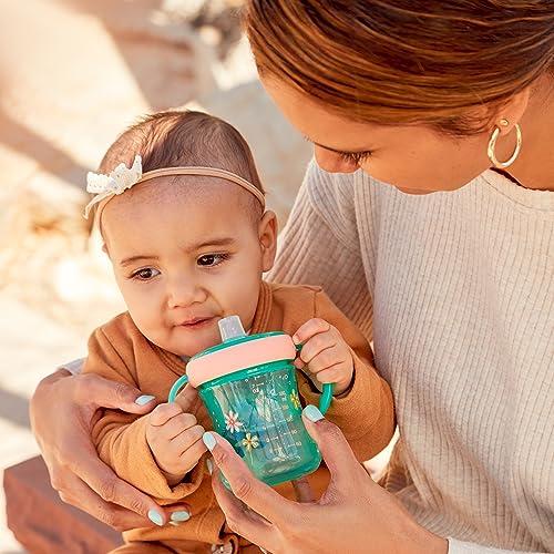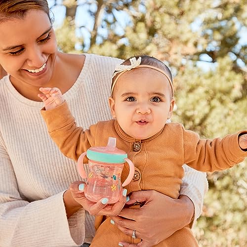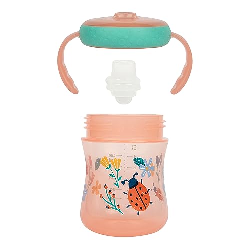 The First Years – Soft Spout Sippy Cup – Toddler Trainer Cup for 6+ Months -with Handles and Leak Proof Lid – 7 Oz – Floral Ladybug Print – 2 Count