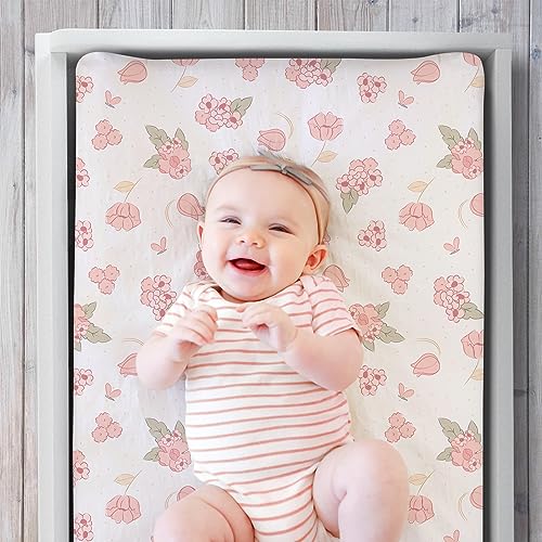 The Peanutshell Changing Pad Covers for Baby Girls, 3 Pack, Boho Floral Nursery Decor
