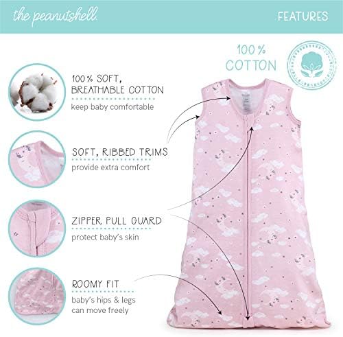 The Peanutshell Wearable Blanket Sleep Sack for Baby Girls, Pink Moon & Celestial, Sizes up to 12 Months (Medium/Large)