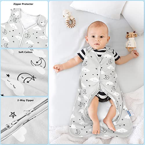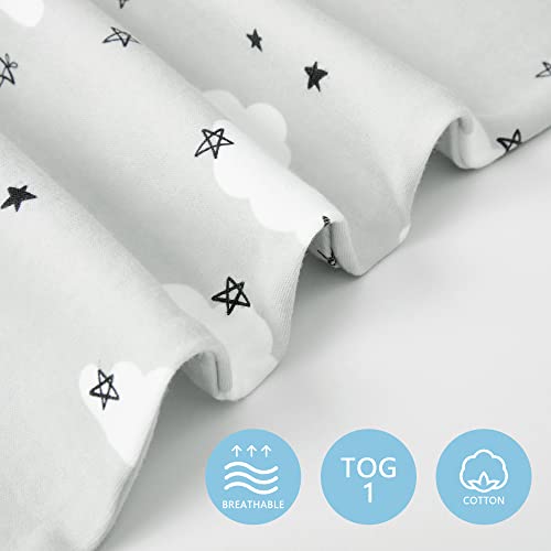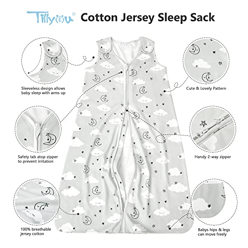 TILLYOU Cotton Sleep Sack 2 Pack – TOG 1 Baby Wearable Blanket with 2-Way Zipper, Extra Soft Sleeveless Sleeping Bag for Infants, 0-6 Months, Grey Cloud & Gray Arrow