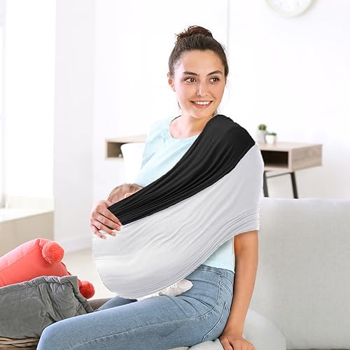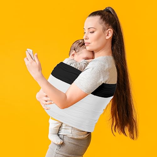 TKKOK Baby Wrap Carrier, Unisex Baby Carrier, Lightweight & Ultra Soft, Easy to Wear Baby Wrap, Perfect for Newborn Toddlers, X-Large, Black/Beige