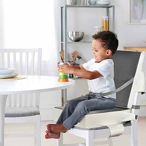 Toddler Booster Seat for Dining Table, Booster Seat for Baby Toddler Chair with Adjustable Waist Belt, Waterproof Kids Chair Cushion for 2-6 Years Old Kids (White)