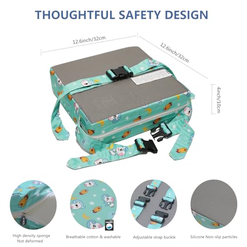 【WIDELY APPLICATION】Booster Seat For Chair at Table , can be used for child feeding, drawing, writing or playing, and can also be used as a portable high chair to go to restaurants, travel and other public places. Adjustable straps facilitates carrying the cushion like a backpack.
