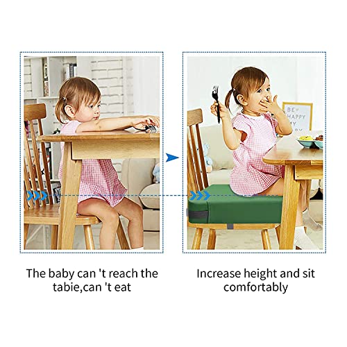 Toddler Booster Seat for Dining Table, PU Washable Double Safe Straps Non-Slip Bottom Booster Seat Dining Toddler, Portable Travel Increasing Cushion (Dark Green)